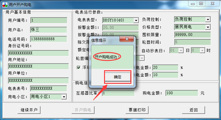 系統提示“開戶購電成功” 單擊“確定”,就開戶完成了。