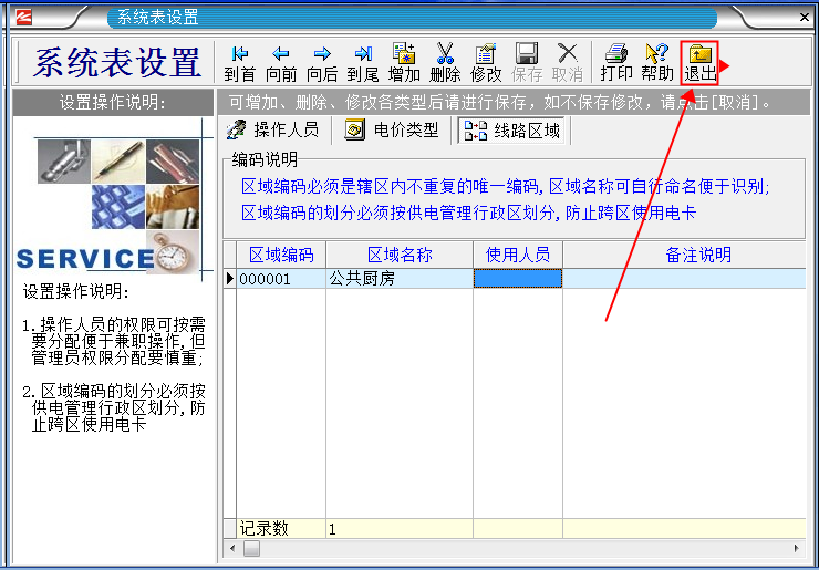 “區域”的意思就是,你想把電表分成幾個區域使用,你就設置幾個區域。如(你有6只電表,想分成ABC三個區域,A區的用戶 不能在BC區使用,B區的用戶不能在AC區使用,C區的用戶不能在AB區使用。 如果想讓所有的用戶在所有的電表上都能使用的話,就1個區域就可以了)。
