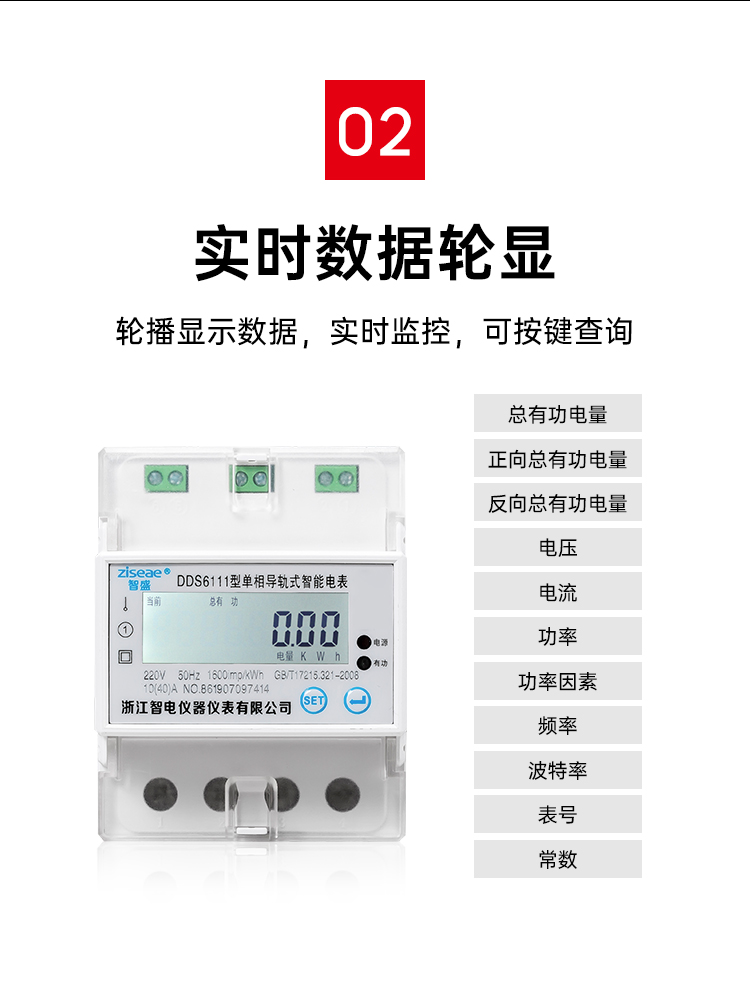 2、采用高品質計度器顯示累計電量(6+2位),顯示清晰鮮艷直讀性好。