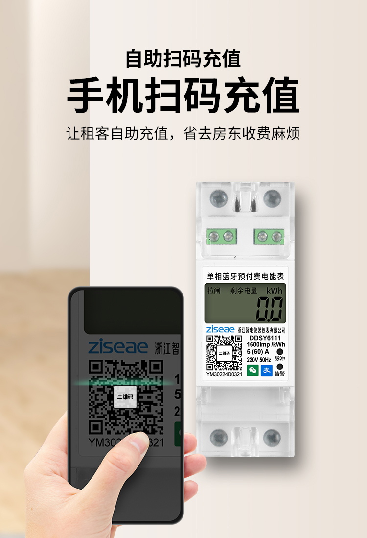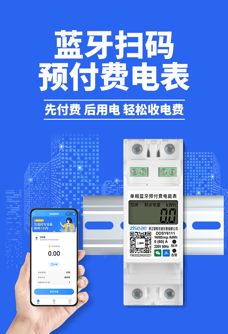 單相導軌藍牙掃碼充值電表