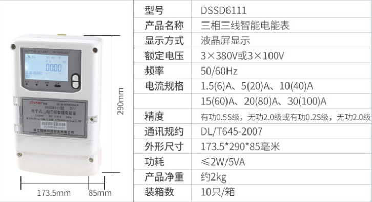 DTSD/DSSD6111型電子式三相智能電能表是采用集成電路,應用數字采樣處理技術及SMT工藝,根據工業用戶實際用電狀況所設計、制造的儀表。