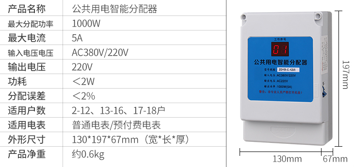 七、本機(jī)自身耗電(雖然≤0.5W)同樣參與平均分配。并自動(dòng)檢測帶電戶數(shù)。做到隨意接通幾戶就分配幾戶,確保負(fù)載不失電。