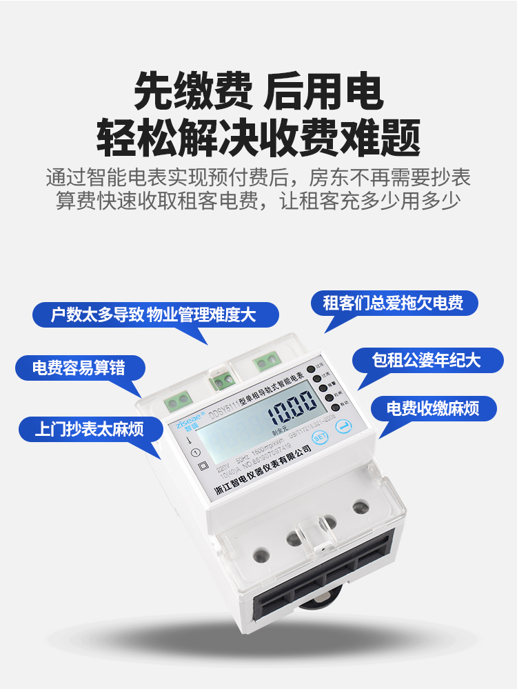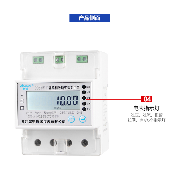 DDSY6111型遠程導軌式單相預付費電能表,采用單片微控制器進行數據采集,處理和保存。具有良好的抗電磁干擾,低功耗,高過載、準確度高,壽命長等優點。其性能指標符合GB/T 17215.321-2008《1級和2級靜止式交流有功電度表》中對電子式有功電度表的技術要求,符合GB/T15284-2002《多費率電能表 特殊要求》對復費率電能表的技術要求,并符合GB/T18460-2001《IC卡預付費售電系統》的各項技術要求。通信規約可支持DL/T 645-2007《多功能電能表通信規約》,為用電自動化管理提供了必備的條件。