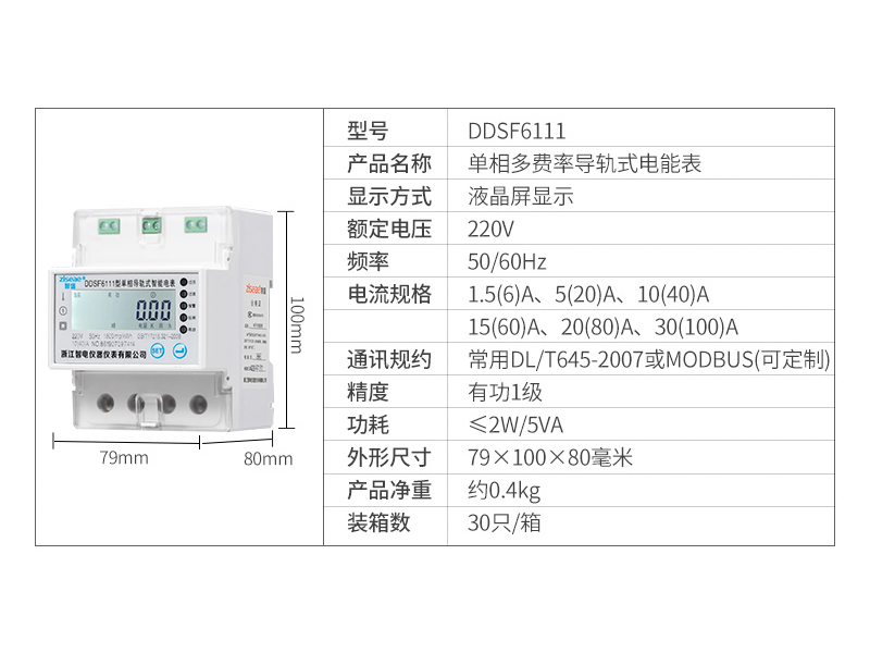DDSF6111單相導(dǎo)軌式多費(fèi)率電能表(4P)